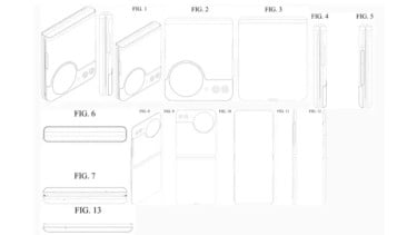 Perangkat dalam dokumen paten tetap menggunakan desain clamshell khas Z Flip, lengkap dengan engsel tengah dan layar utama lipat. Namun, di bagian belakang, alih-alih panel persegi panjang besar, terdapat layar bulat kecil yang ditempatkan di samping modul kamera.