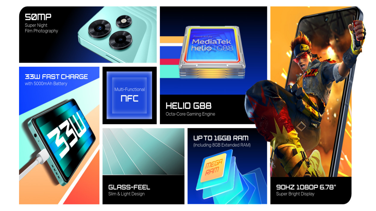 Ditenagai oleh chipset MediaTek Helio G88 dan RAM 8GB, smartphone ini mampu menjalankan game Free Fire dengan lancar. Kemampuan memperluas RAM hingga 16GB memberikan tambahan performa yang signifikan saat menjalankan aplikasi dan game berat.